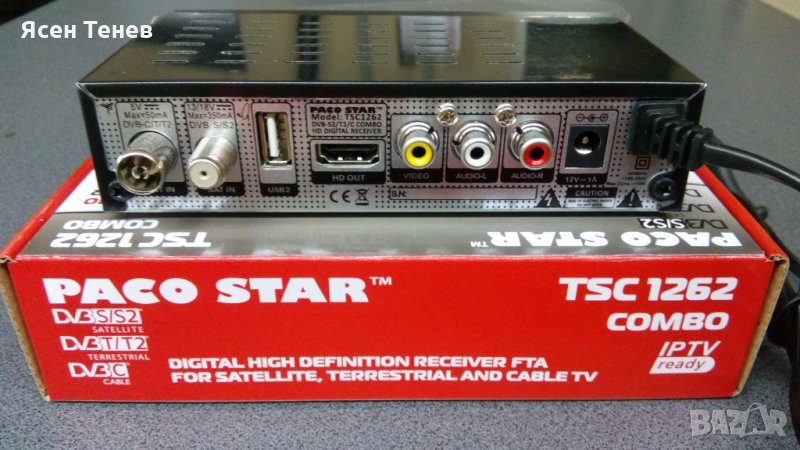 PACO STAR TSC1262 Full HD представлява комбиниран DVB-T/T2 ефирен, DVB-S/S2 сателитен и DVB-C кабелен приемник за гледане на ефирна, сателитна, кабелна и Iptv телевизии. Поддържащ мултистрийм T2-MI, PLP0.