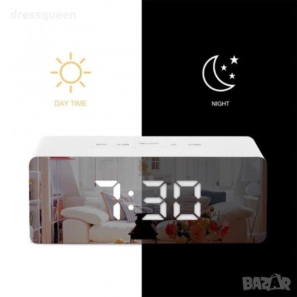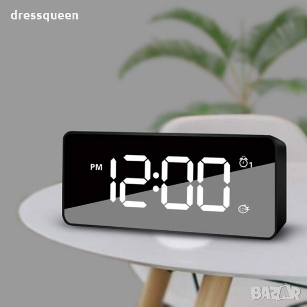 Настолен LCD дигитален часовник с термометър и огледално покритие на дисплея.