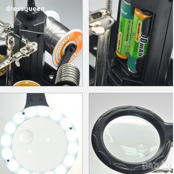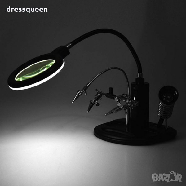 802 Настолна лампа с лупа трета ръка и стойка за запояване → Обява 25078599