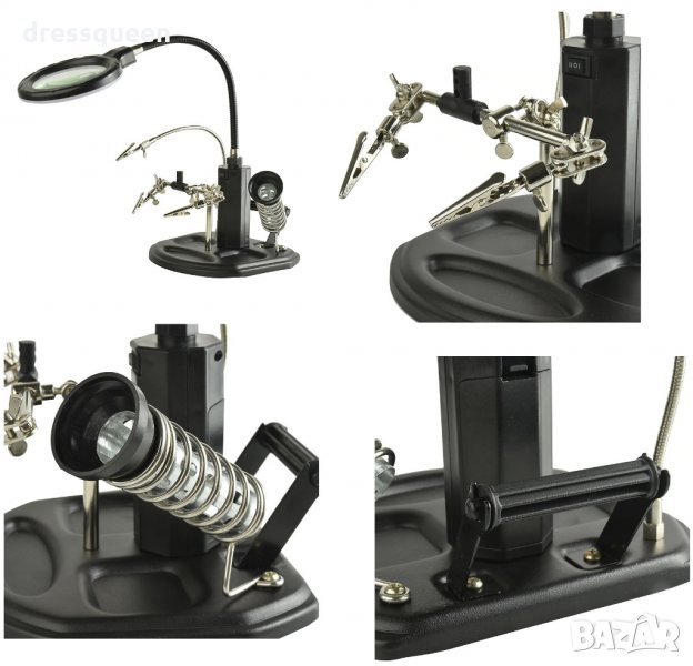 802 Настолна лампа с лупа трета ръка и стойка за запояване