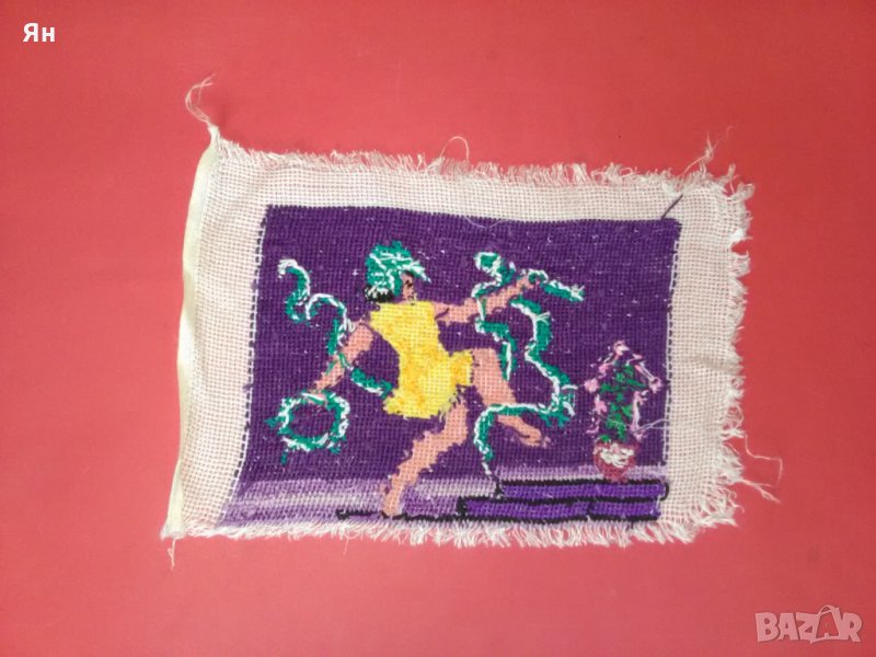 Български Стар Ръчно Извезан/Ушит/Бродиран Гоблен 'Художествена Гимнастичка с Ленти'