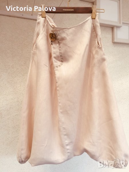Уникална интересна дреха,пола-потури.изглежда и стои като пола.джобове,кройка,материята(лен)-всичкото е прекрасно. Талия - 42,5см, дължина - 75см-77см.