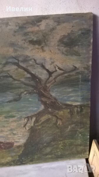 стара картина-пейзаж.масло на платно на подрамка с размери 58см/74см.има забележки-посочени са.