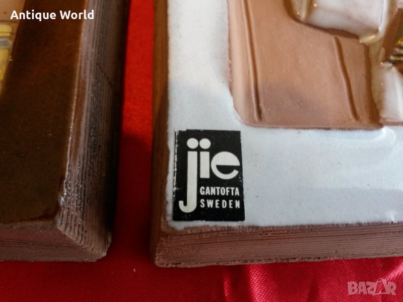Лот от Две Много Красиви Стари АВТОРСКИ Керамични Картини Уникат! На Шведската Фирма Jie Gantofta SWEDEN .Фирмата е основана 1942г и е работила и закрита до 1992г. .Ръчна Изработка.Множество Маркировки.Състоянието е видно.