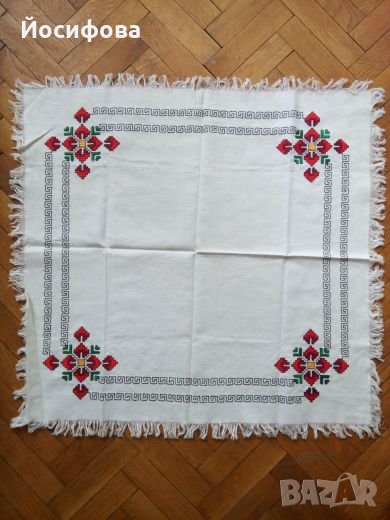 Не употребявана ръчно бродирана покривка от колекция битов текстил на повече от 100 години, 68/68 см.