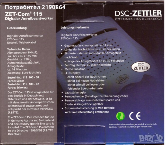 Дигитален телефонен секретар DSC-Zettler, ZET-Com 115.