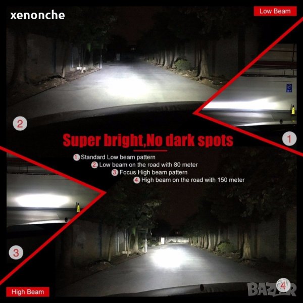 Системи LED cree с най-високо качество на изработка изцяло алуминиев корпус и мощно осветяване от 4800 лумена на крушка. Слим формат с охладителна система снабдена с японски вентилаторен механизъм благодарение на които топлината се разпределя равномерно без да уврежда основата на фара. Всяка лампа е оборудвана с Cree Customized LED диоди от последното поколение, като силата на излъчваната светлина е равномерно разпрашена и в пъти по-силна от тази на стандартните лампи.