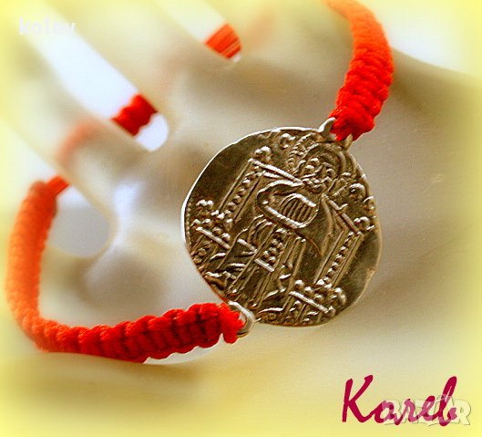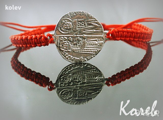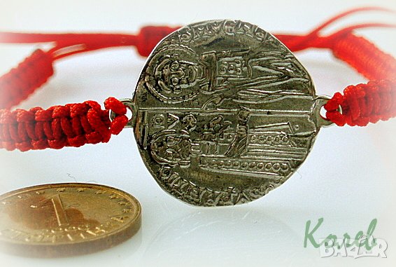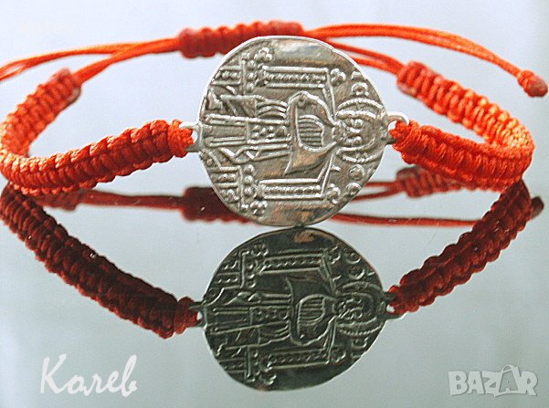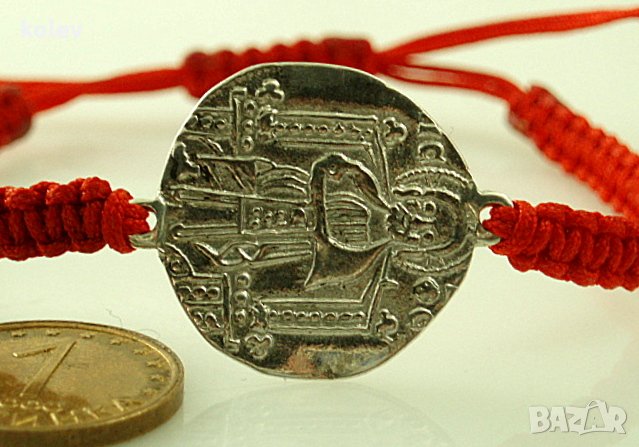старинен стил, сребърен елемент в гривна червен конец
