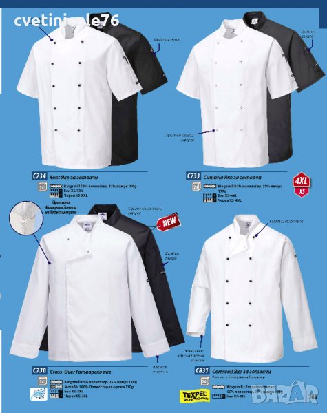 Готварско облекло, снимка 1 - Друго оборудване - 25136548 Готварско облекло, снимка 2 - Друго оборудване - 25136548 Готварско облекло, снимка 3 - Друго оборудване - 25136548 Готварско облекло, снимка 4 - Друго оборудване - 25136548 Готварско облекло, снимка 5 - Друго оборудване - 25136548 1/5