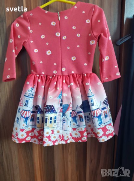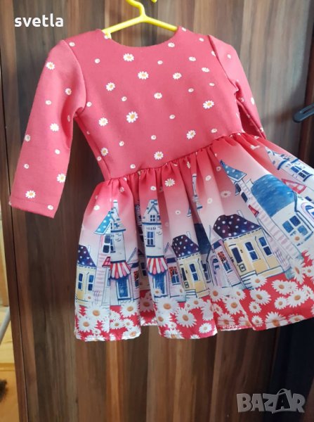 Страхотна рокля с дълъг ръкав за принцеса в червено с маргаритки,които валят над града! Може да се носи от 6-12м зависи от детенцето!