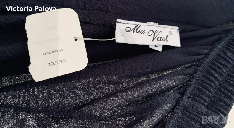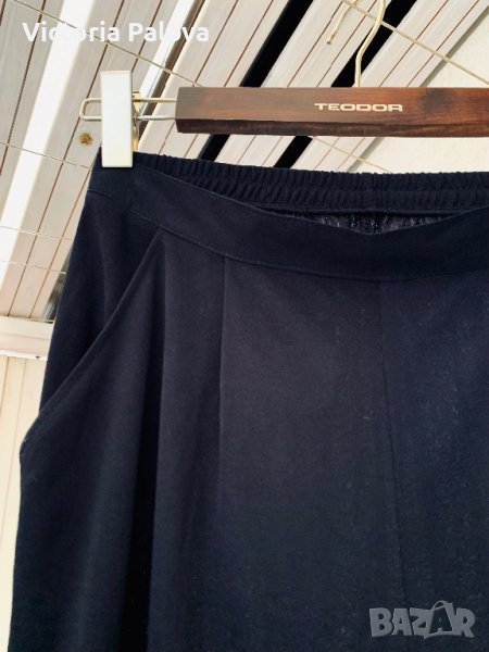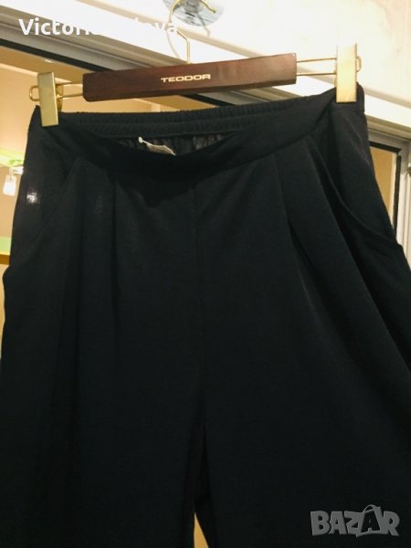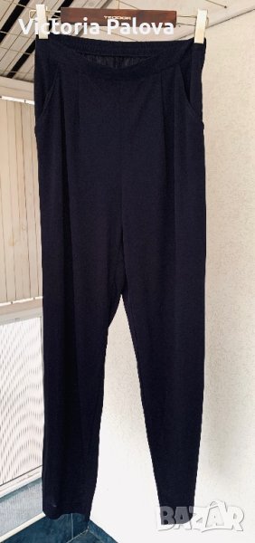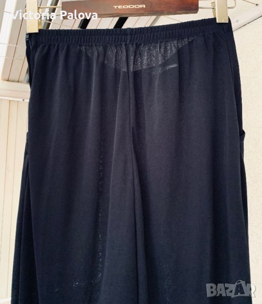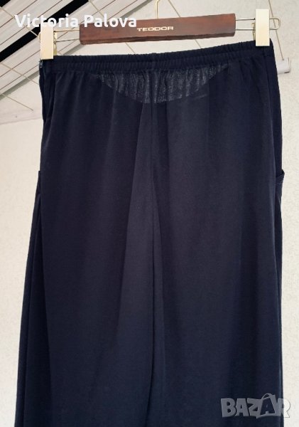 Много удобен панталон модерна кройка,стои прекрасно.за L или голям М,със страничен цип, два джоба, на колана отзад е с ластик, материята е гладка и “студена”.Талия - 35-45см ( разтяга се),дължина - 105см , отвътре - 73см, широчината на крачола горе - 36см, долу - 20см.