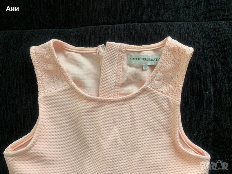 Светлорозова рокля - разкроена е в долната част.На презрамките има дантела.По етикет е 140 см,но е умалена.Цена 10 лв.