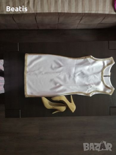 Бяла къса роля със златен кант обличана веднъж,размер С ,обувки с ток 37 номер -18 лв