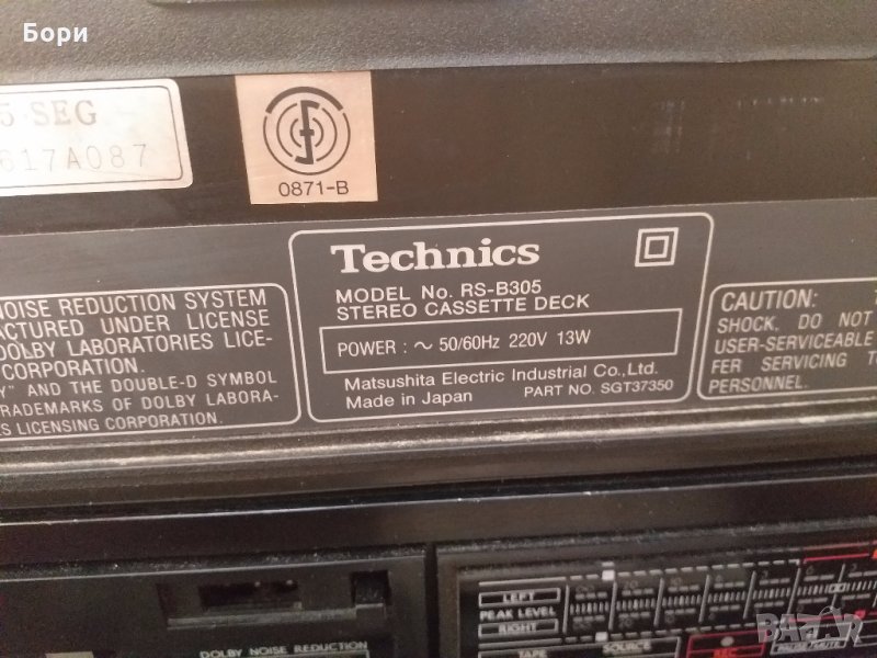 Technics RS-B 305,алуминиев преден панел,два мотора,Microprocessor Logic Control System.Dolby B + C and Metal Tape Capability.430 x 105 x 230 mm.1986г. 3.4кг.Технически изправен,много добър звук,външно състояние видно от снимките,Драскотини по горния капак.