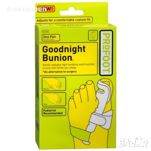 Goodnight bunion е удобен, безопасен и високо ефективен. Намалява напрежението в областта на големия пръст, което се създава от съществуващите позиционни промени в ежедневието на човек.
