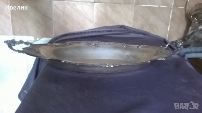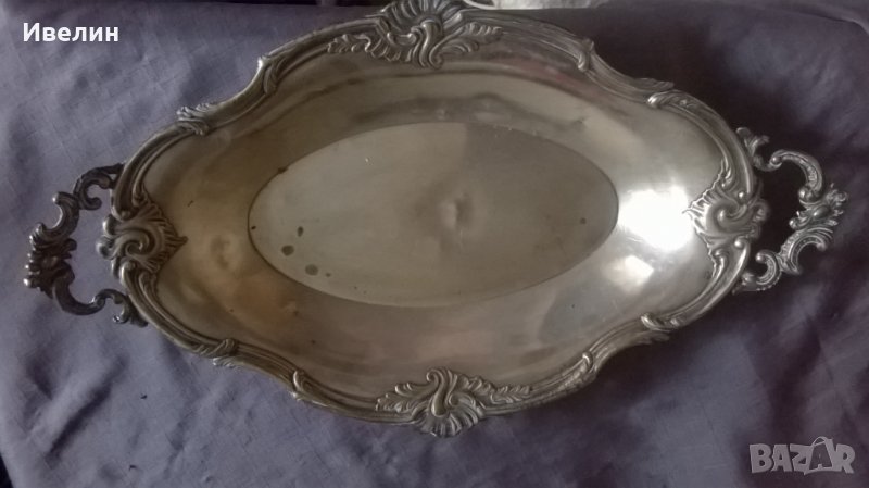 посребрена купа,фруктиера арт деко от цветна сплав.дължина 44см,само купата е 37см/25см.внос от франция.леки забележки/видни на снимките/,