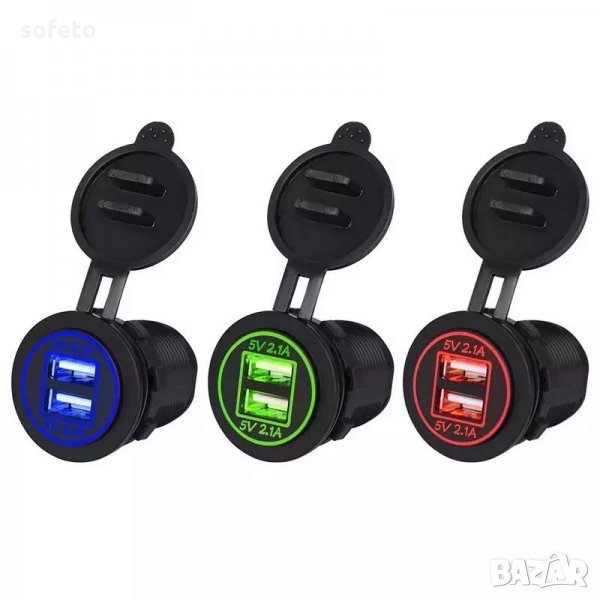 USB зарядно за вграждане СИН в кола камион зарядно за телефон водоустойчив → Обява 25174484