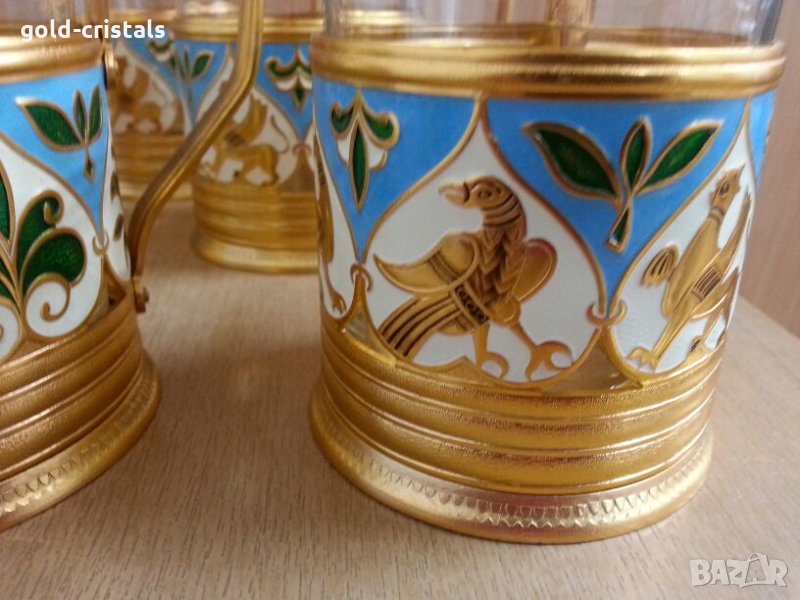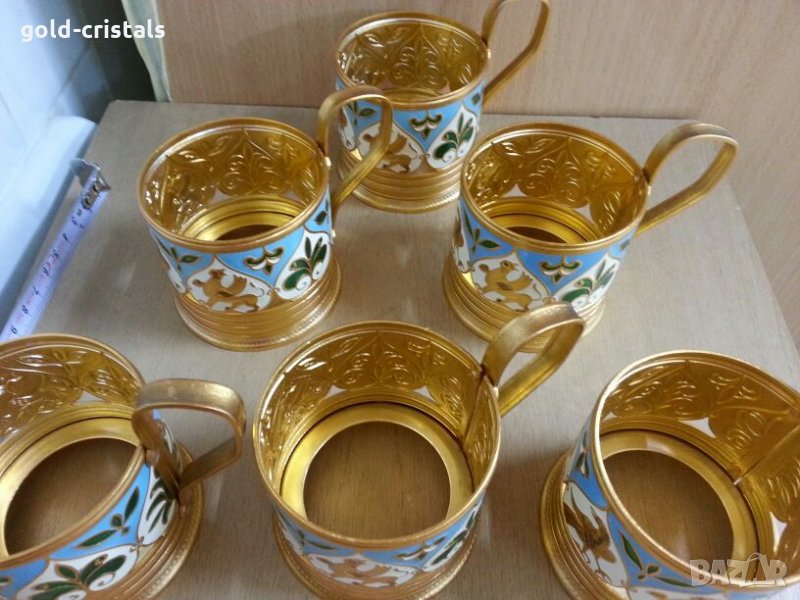 подстакани с техника емайл за чаши за чай неизползвани маркирани 6бр-39лв .по желние може да поръчате и 6бр чаши стъклени закалено стъкло неизползнани от 63г с червени или бели ленти 6бр -89лв гравирани 6бр-60лв с картинка ягоди 6бр -50лв с картинка гроздове 6бр-55лв стар старинен антикварен ретро арт декор винтидж колекция стари старинни антикварни предмети обзавеждане за дома и семейството подходящи за подарък за ценители и колекционери съветски ссср подложки за чаши поставки за чаши метални златисти гравирани рисувани емайл