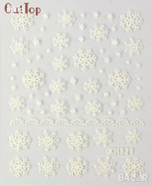 бели снежинки татос ваденки лепенки стикери за нокти маникюр, снимка 1 - Продукти за маникюр - 25176306  бели снежинки татос ваденки лепенки стикери за нокти маникюр, снимка 2 - Продукти за маникюр - 25176306 1/2