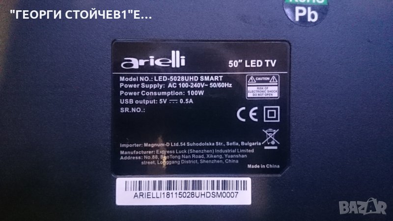 LED5028UHD SMART TP.MT5522S.PC822 CV500U1-T01-CB-1 CX500DLEDM → Обява 25185532
