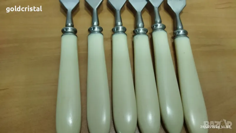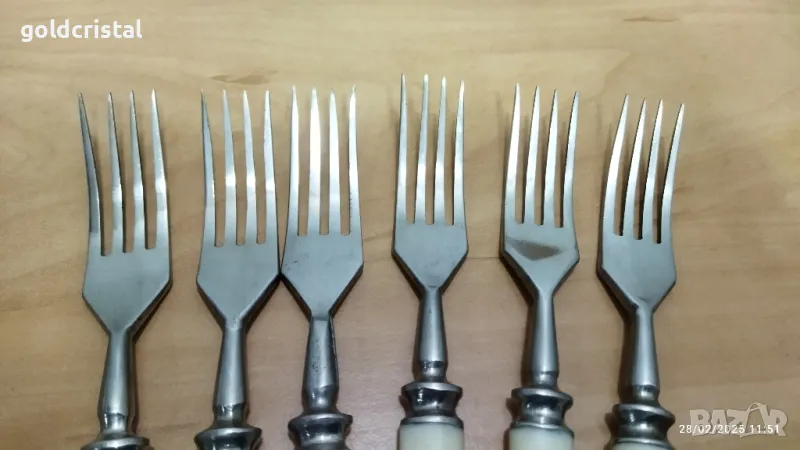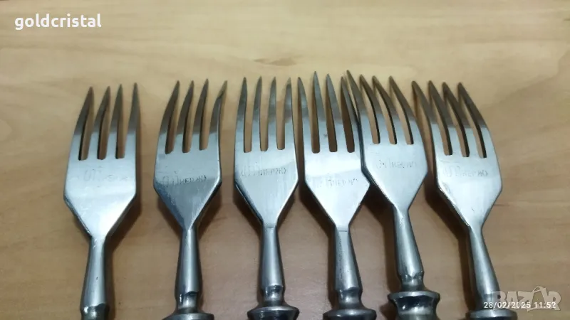 Стари руски прибори в картонена кутия 6бр вилици 6бр вилици съветски ссср маркирани неръждаеми сервиз коплект сет лот ретро арт декор винтидж колекция стари антикварни предмети обзавеждане за дома и семейството подходящи за подарък за ценители и колекционери