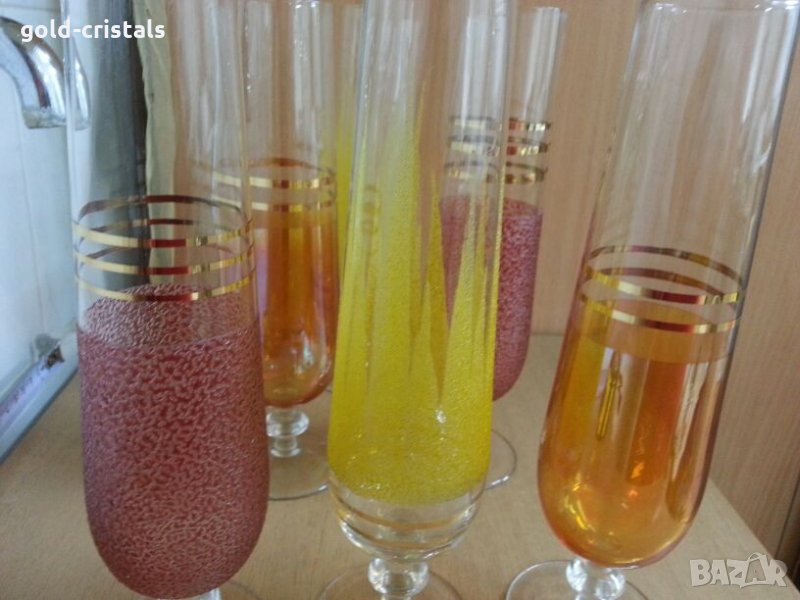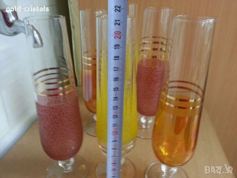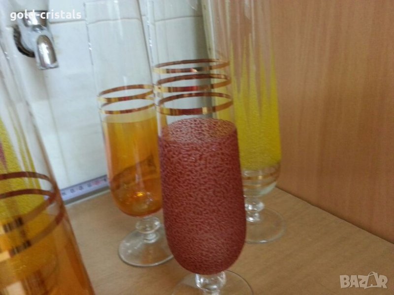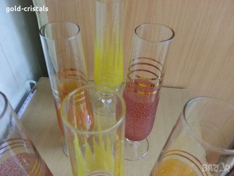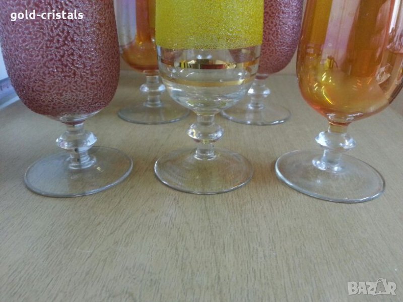 ретро стъклени цветни чаши с златен кант позлата кристално стъкло цветно стъкло стари старинни арт декор винтидж колекция стари старинни антикварни предмети обзавеждане за дома и семейството подходящи за подарък за ценители и колекционери сервиз комплект сет лот