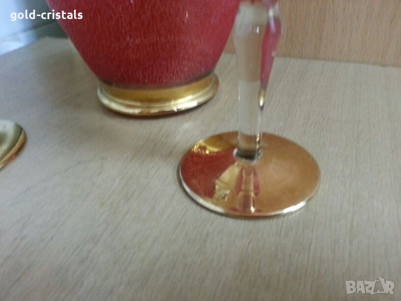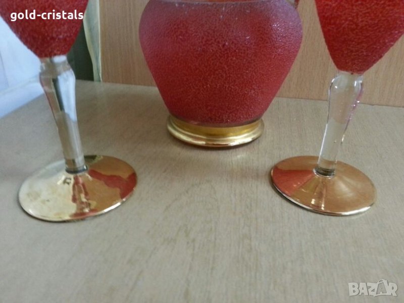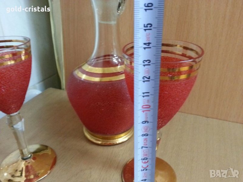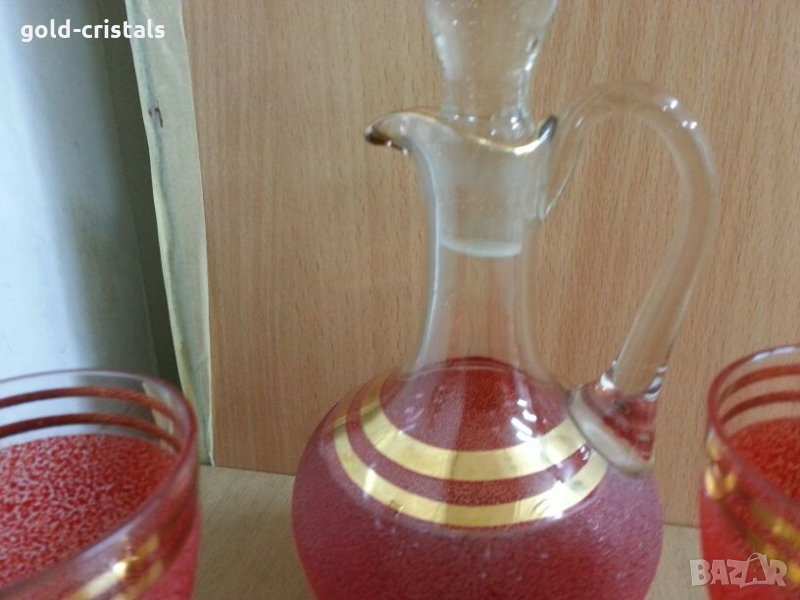 ретро сервиз за двама стъклена каничка гарафа с две чаши стар старинен антикварен арт декор винтидж колекция стари антикварни предмети обзавеждане за дома и семейството стъклен златен кант позлата без забележки комплект сет лот ретро арт декор винтидж колекция стари старинни антикварни предмети обзавеждане за дома и семейството подходящи за подарък за ценители и колекционери
