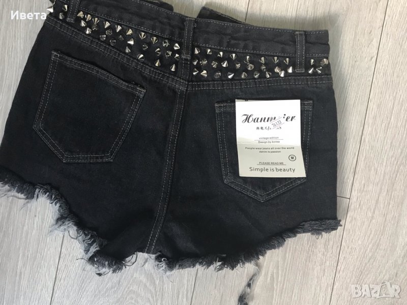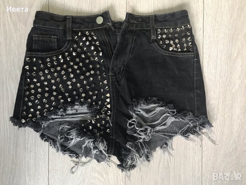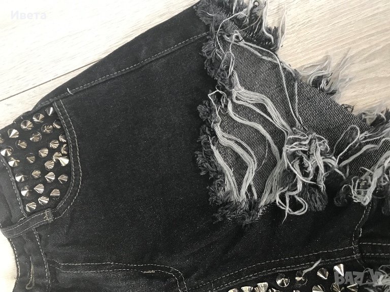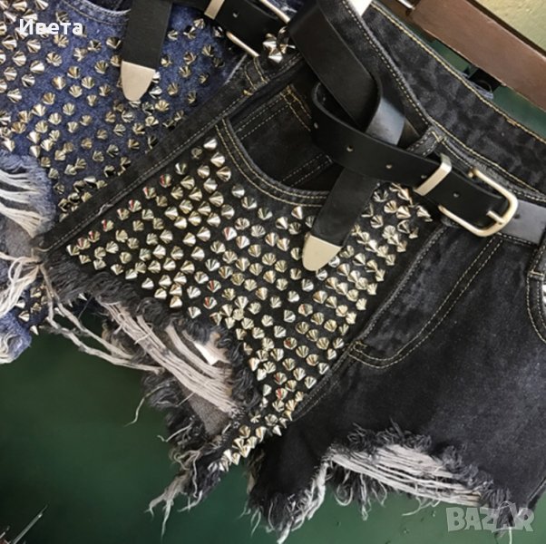 Дамски накъсани дънкови панталонки с шипове