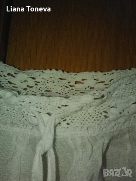 Памучен плат,плетена дантела на презрамките и бието,дьльг като туника.