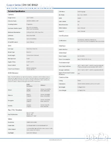 Видео изход: AHD / HD-CVI / HD-TVI / PAL, 1 Vpp / 75 Ω