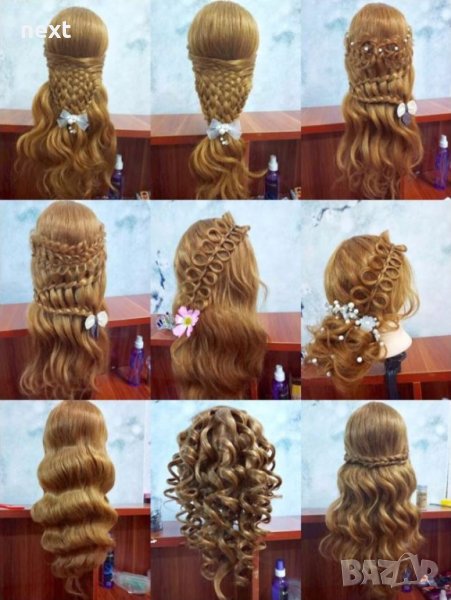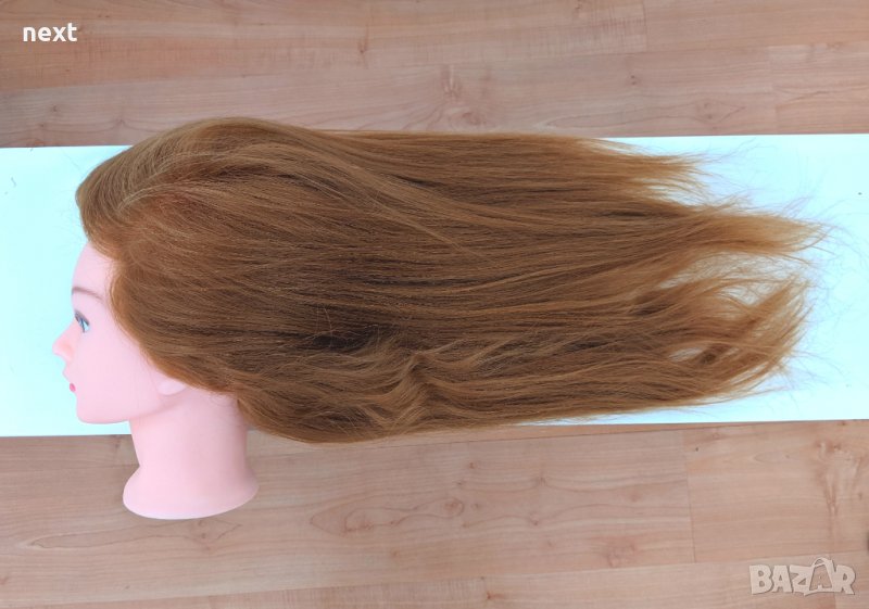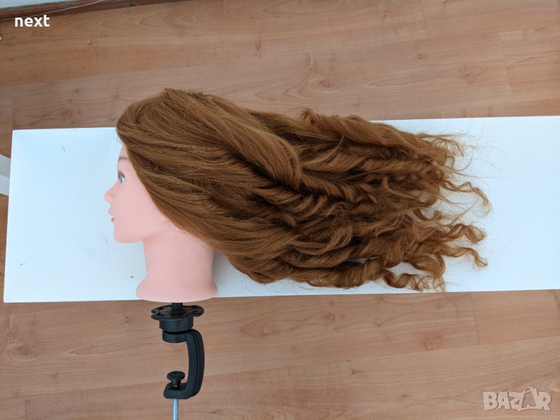 + НОВ манекен с ЕСТЕСТВЕНА коса за фризьорско обучение (тренировка) + СТОЙКА и фризьорски АКСЕСОАРИ