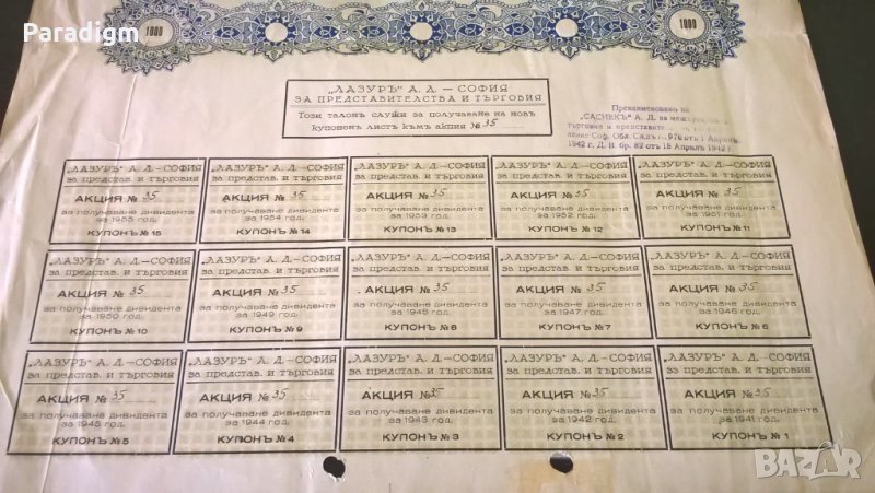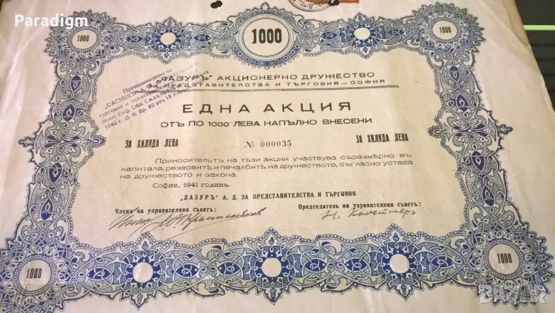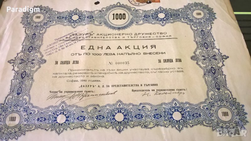 Акция от 1941г. за 100 лв.
