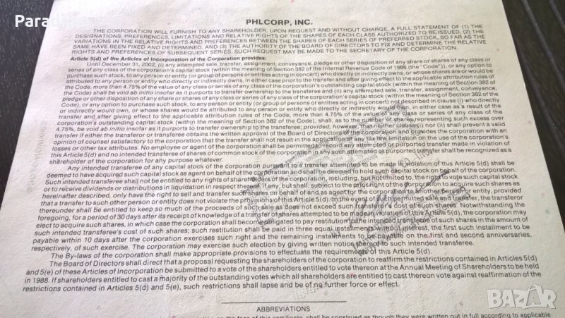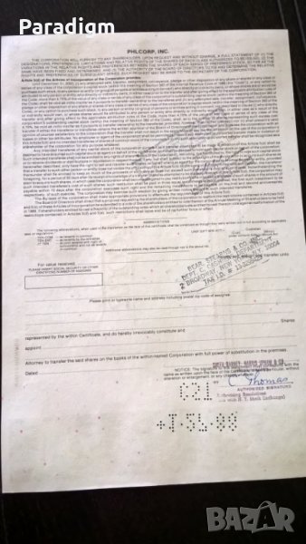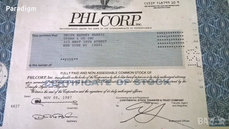 Сертификат за притежание на акции от 1987г.