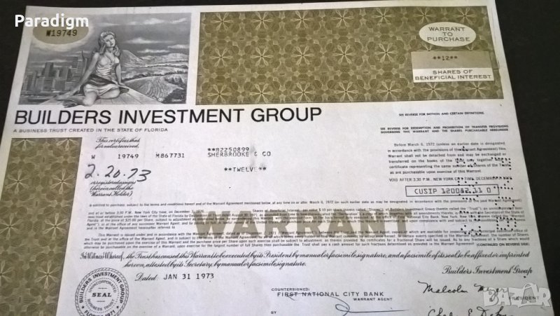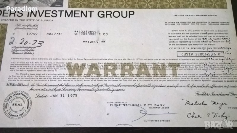 Варант за покупка на акции от 1973г.