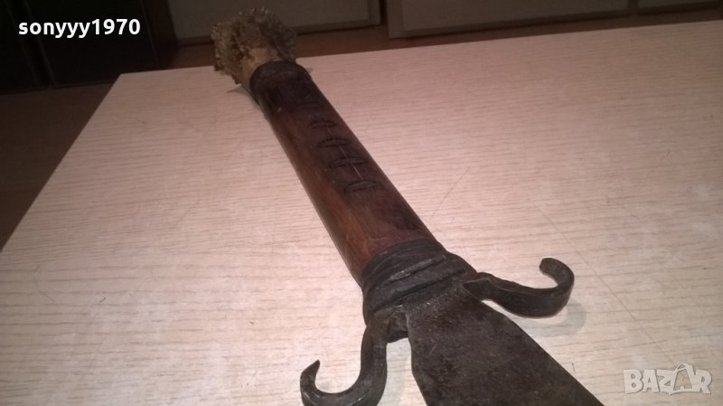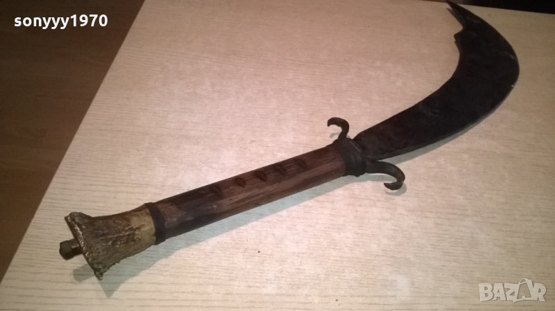 меч/ятаган-ретро колекция-внос от швеция-72см-стар и стилен голям с размери-72х10х6см-за колекция декорация или ползване-дебело желязо 5мм на острието-внесен вчера от швеция-дървена дръжка и метално тяло с орнамент отзад от рог-класа и красота в едно-тежка колекционерска находка-поръчки само тук в саита! от днес 28.02.22г пращаме със спиди или еконт с преглед и тест след превод на капаро за куриерската услуга поради зачестили некоректни потребители-поръчки само в тук в саита! по телефона и със смс не! краини цени! бартери не правиме! всеки ден нови неща-още над 18000 обяви тук