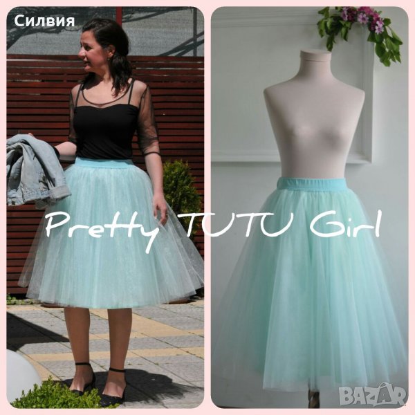 Тюлена пола за дама с висока талия в А силует. Изработена от 3 пласта тюл. Колана за повече удобство е с ластик. Размери- XS- талия 70 /дължина 50, S-талия 74/ дължина 52, М-талия 78/ дължина 54, L-талия 82 /дължина 56, XL-талия/ 86 дължина 60. #тутуполапачка Възможно е изработване по индивидуални размери, изпращам по Еконт с преглед и 10% отстъпка от доставката . За информация facebook Pretty TUTU Girl