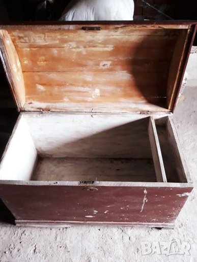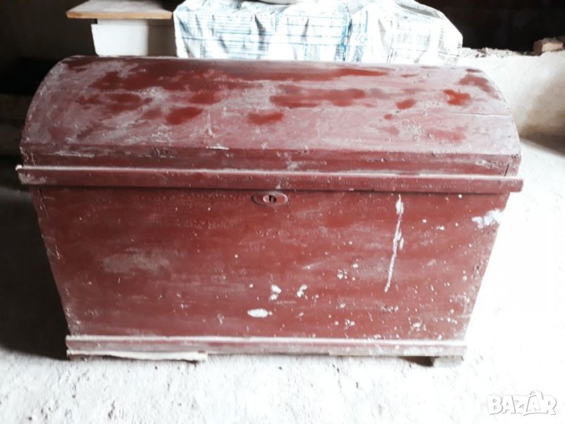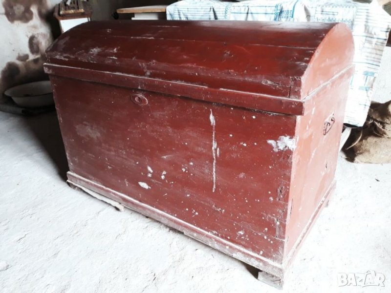 Голям тежък винено червен дървен сандък с объл капак с размери 102/68/56см цена 100 лв;