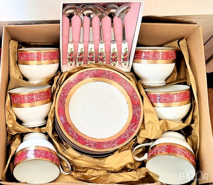 Стилен сервиз - 17 части за чай/кафе от висококачествен порцелан използваем в съдомиялна машина .