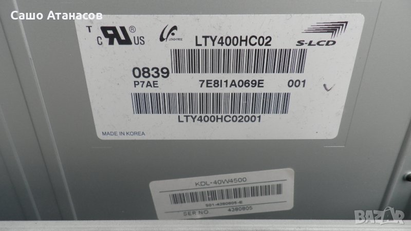 SONY KDL-40W4500 с дефектирала матрица , 1-876-467-21 , 1-877-366-13 , SSB400W20S01 , LTY400HC02