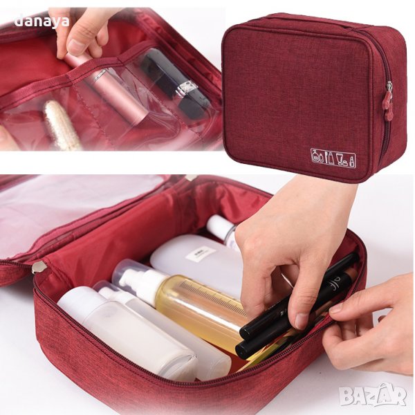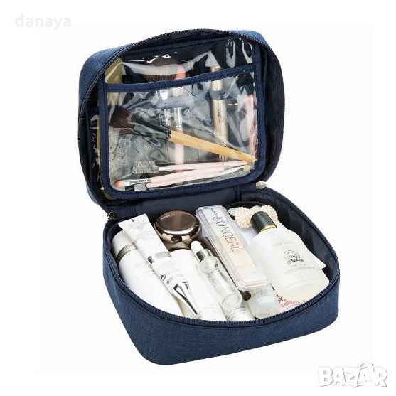 Козметичен несесер за пътуване. Чанта за тоалетни принадлежности с прегради. Несесер за гримове с отделения за четки за грим, спирали, паста и четка за зъби и други. Побира наистина много неща. Компактно куфарче за гримове с водонепропусклива материя. Тоалетна чантичка за път, удобна и практична. Предлага се в 5 цвята подходящи за мъже и жени - светло син, тъмно син, сив, бордо и лилав.