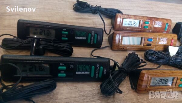 Чисто нови термометри + часовник вътрешна и външна температура. Цената е 5 лв за брой. Само сивия на Alca Germany е 20 лв. Разгледайте и другите ми обяви.