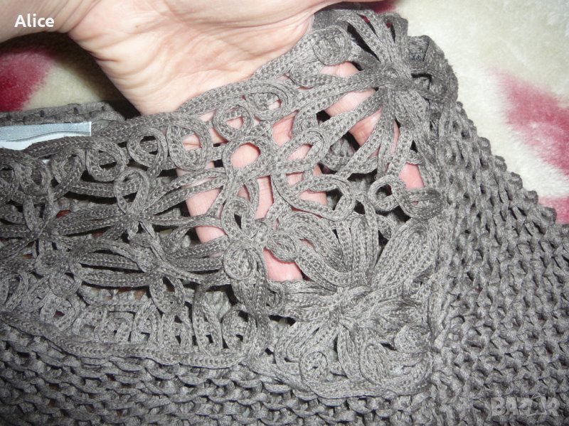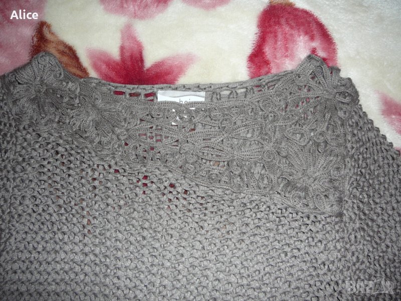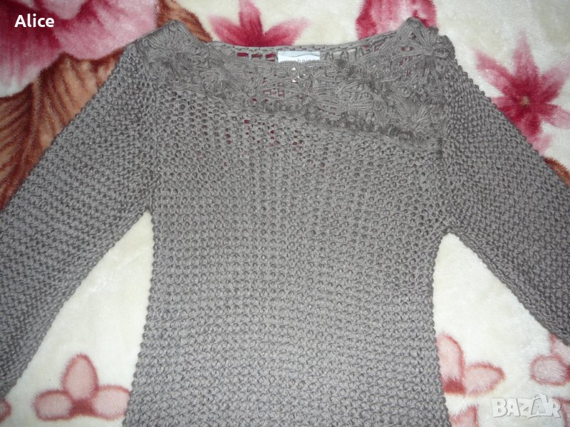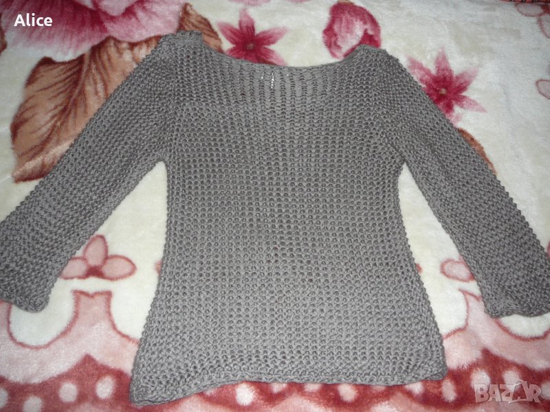 Дамска блуза, размер S /може и М/. Машинна плетка, много интересна. Стои много елегантно и красиво. Обличана е броени пъти, отдолу с риза или боди. Без забележки. Цена 13 лв.