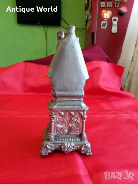 Красива Стара Френска Метална Католическа Статуетка Девата с Младенеца.Задното дясно краче малко по високо ,но не пречи.Състоянието е видно.