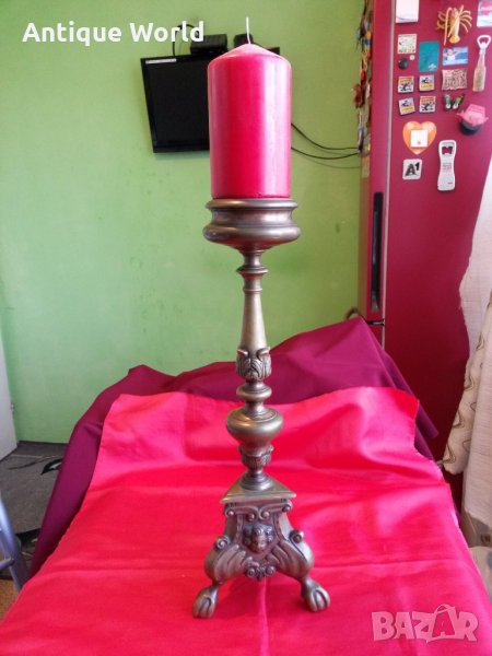 Красив Голям Стар Масивен Църковен БРОНЗОВ Свещник.Тегло около 3Кг ! Състоянието е видно.