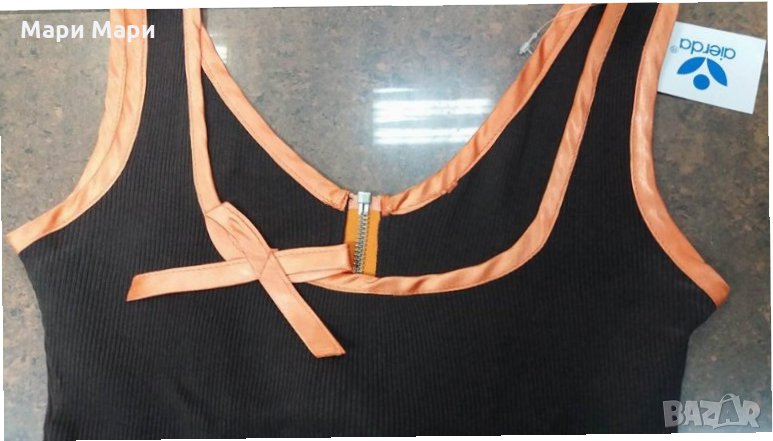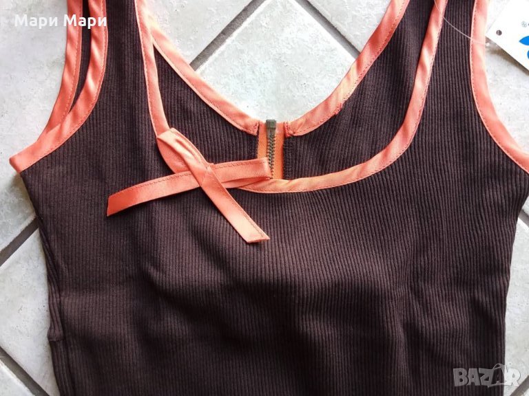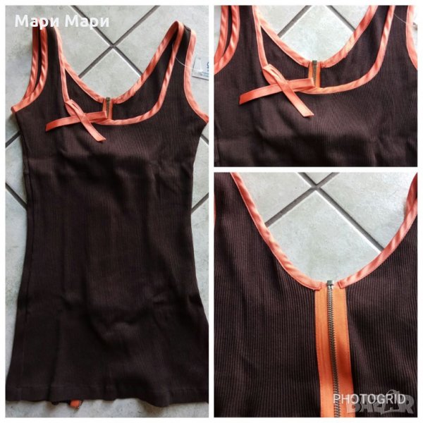 Кафяв потник с цип на гърба,,панделка 95% памук, 5% еластан еластичен рипс отговаря между S и M, дължина: 64 см. ширина под мишници: 35 см. тип Negative,FETISH, Pause Jeans, ALESSA, Цена 25лв.