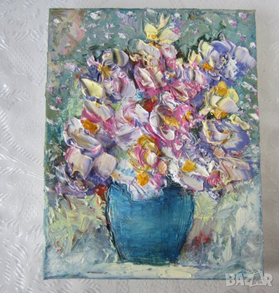 Цветя в синя ваза масло / платно Art by MiMa картина kartina, oil on canvas painting → Обява 25271904
