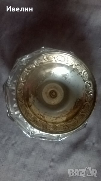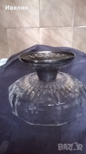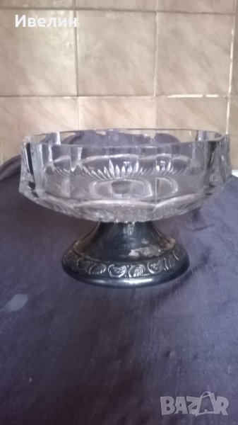 фруктиера,бонбониера арт деко.посребрен метален корпус,кристална купа.висока е 11см,широка 16см.