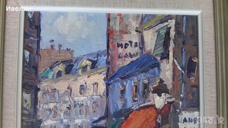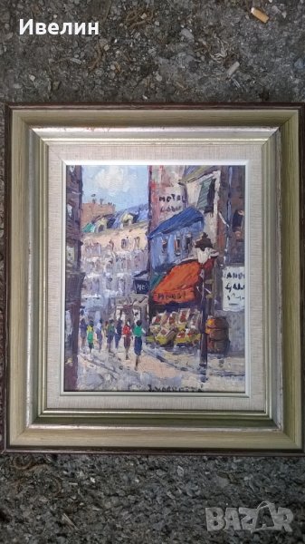 картина-пейзаж.масло на платно,подписана с размери 28см/23см,в рамка с размери 43см/38см.внос от франция.