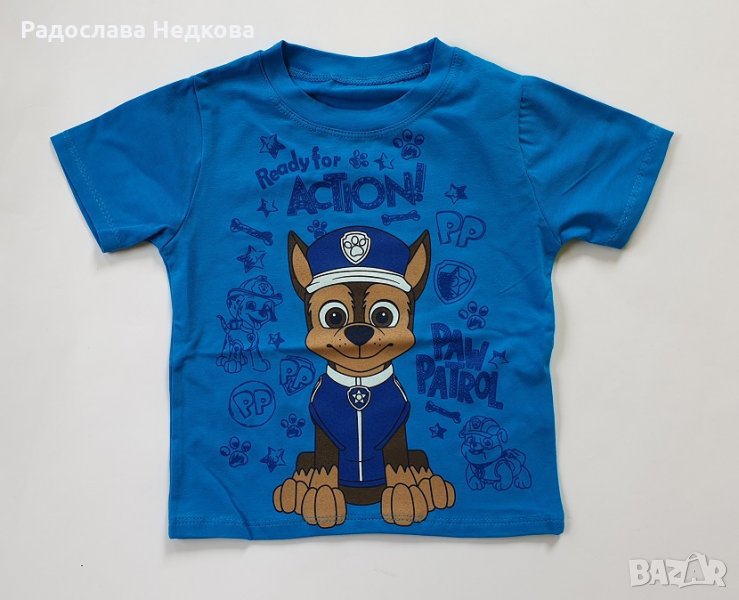 Страхотен памучен летен комплект за момче - тениска с апликация на кученцето от Пес Патрул и къси черни панталонки. Българско производство. Налични размери - 80 см