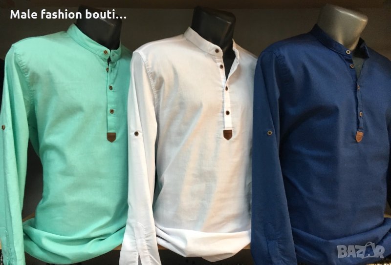 Страхотни спортни мъжки ризи с копчета до средата. Налични са в различни цветове - бяло , черно ,ментово зелено , кралско синьо , тъмносиньо , червено и син парламент. Много приятна мека и еластична материя , нагъват се и на къс ръкав .